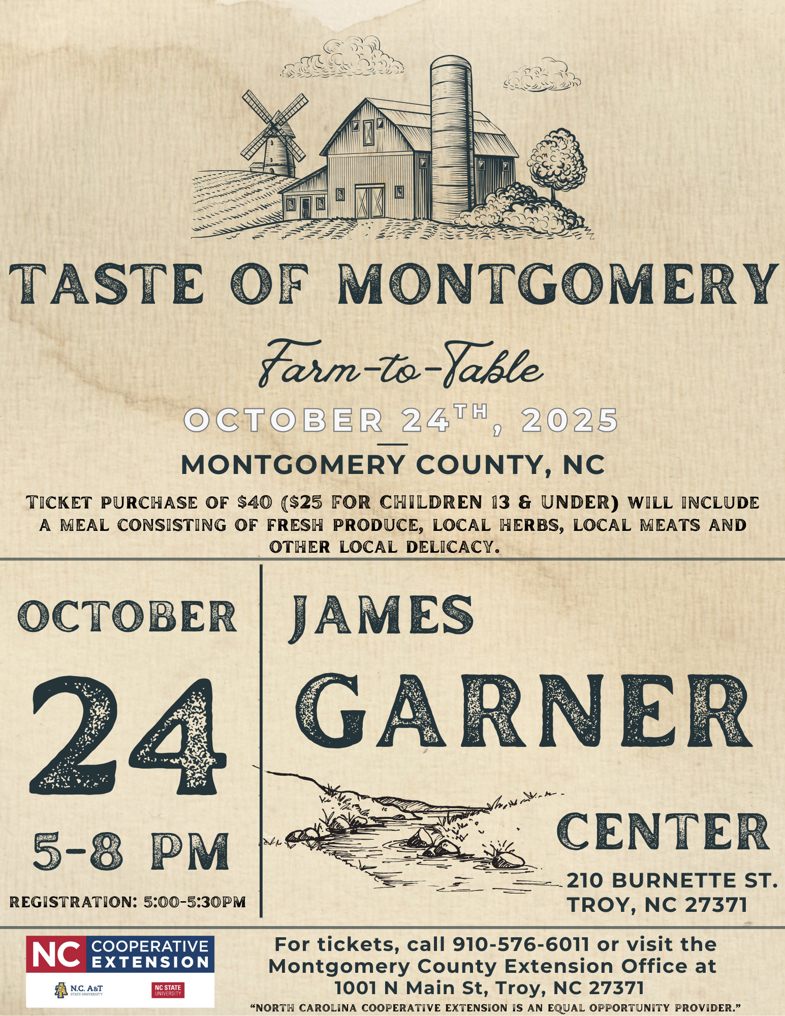 This event is to be held this year on October 24th starting at 5 p.m. at the James Garner Center (210 Burnette St. Troy, NC) and will be a family friendly event. Registration will run from 5:00 p.m. to 5:30 p.m. This year’s dinner will be buffet style and will feature local meat and produce from area farmers.Tickets are priced at $40 per ticket for adults. Children 13 and under will be $25 each. Tickets are on a first-come, first served basis and are limited. To purchase tickets, please visit our new office at 1001 N. Main Street in Troy. We accept cash and check. Proceeds from the event will help our Extension staff to offer programs within our community.