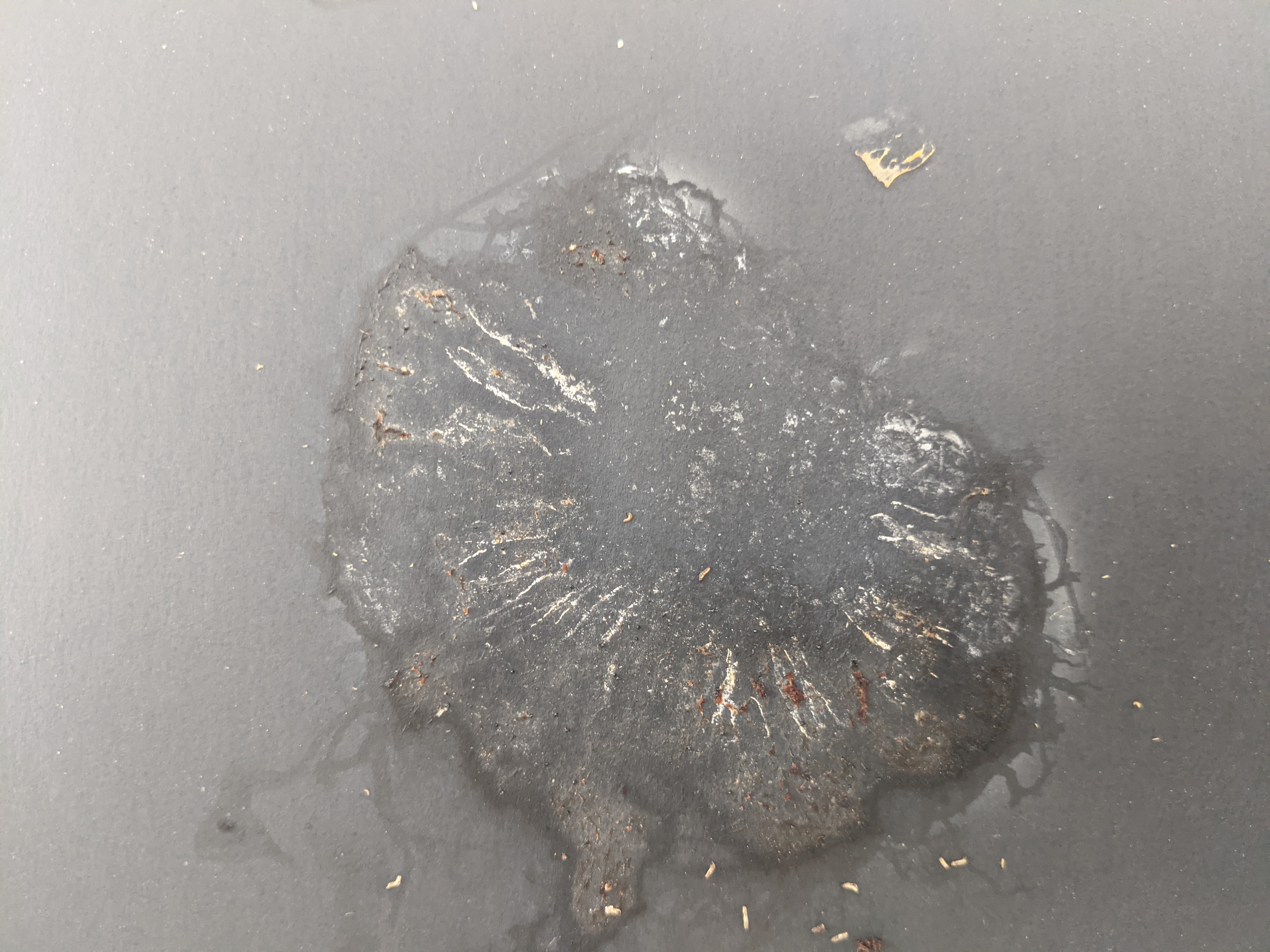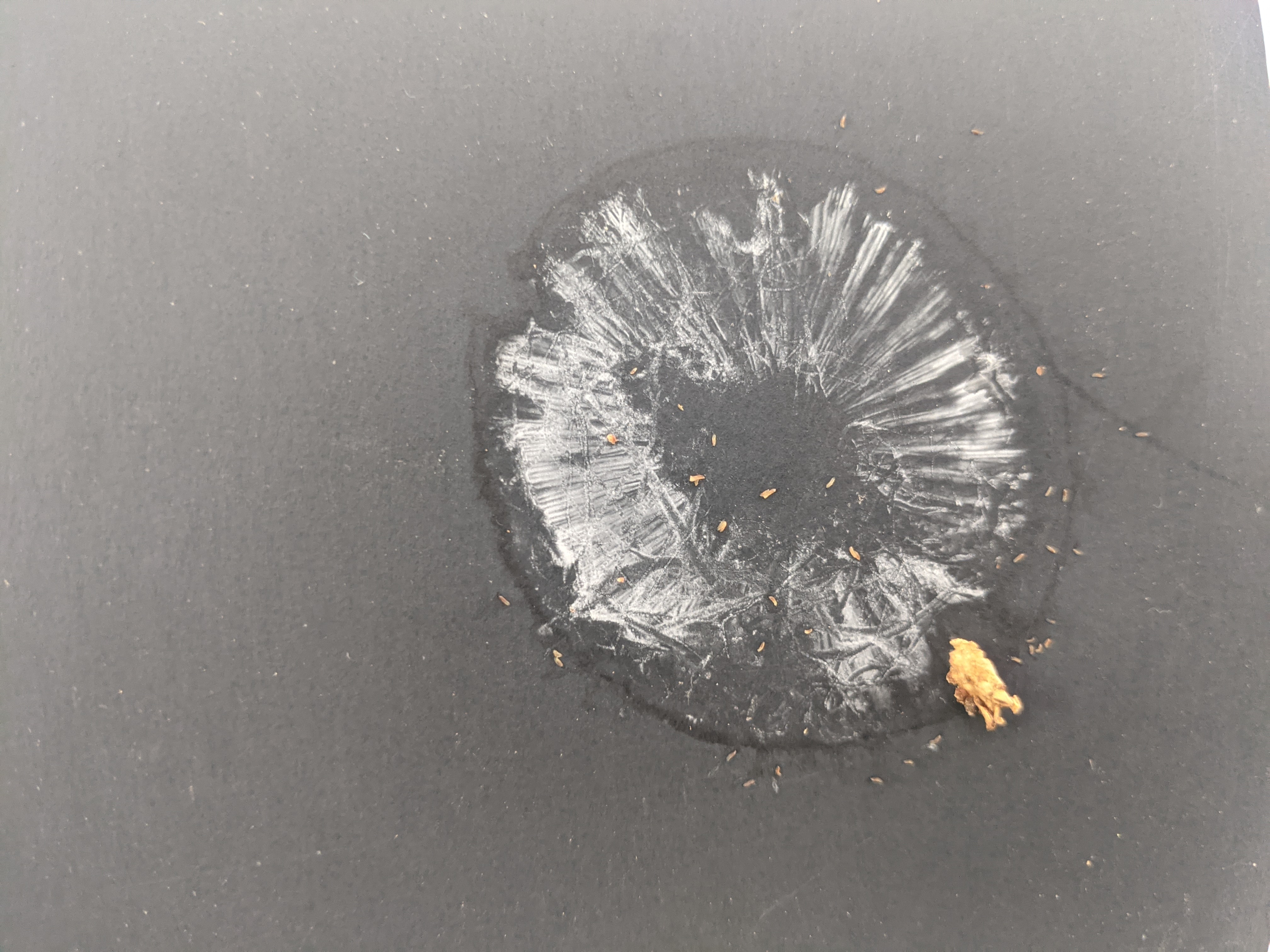 One great way to identify mushrooms at home is to do a spore print. These prints can even be artistic, as spore prints are often colorful and abstract. However, these colors and shapes often tell you about the specific mushroom. To do a spore print, remove the cap from a mushroom and place it gill side down on a dark sheet of paper. Set in a warm dry location for 48 hours. After this time, remove the cap and observe the result. See below for some examples. Spore colors can be any color, ranging from brown to bright pink.
