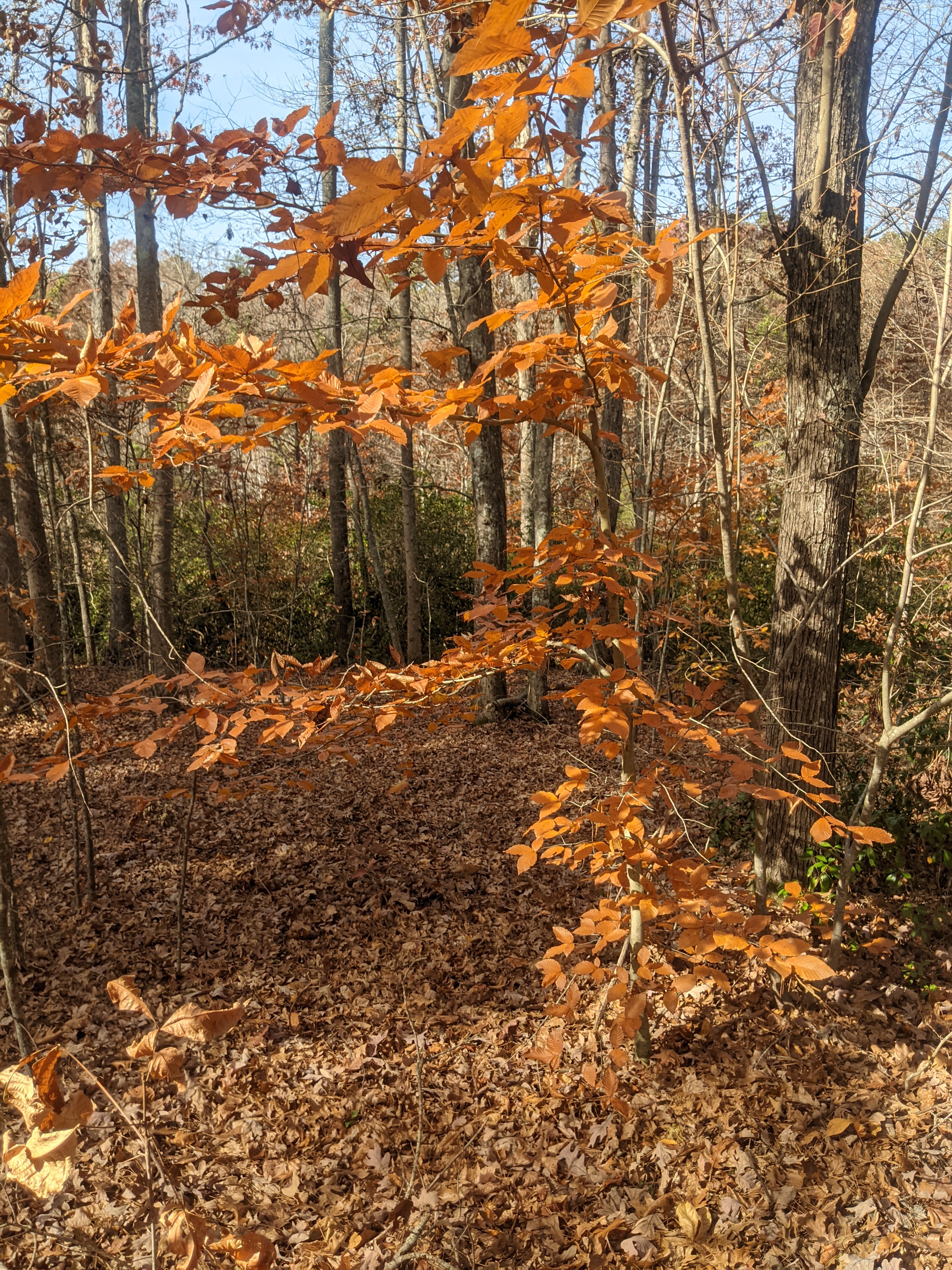 Our first featured plant is the American beech tree. If you have been following along with our Flora Friday’s, in last edition the oak trees mentioned “We don’t let our canopy get too shaggy, Like the beech trees down underneath us do”. The pictures below illustrate that point! Beech trees, or Fagus grandifolia, are native to eastern North America. In Montgomery County they can be found in rich, moist, wooded areas under the canopy; as well as in some public parks where they are great shade trees. You can identify them by a few key features, like their smooth gray bark. Large beech trunks are often carved into by forest goers. This practice is strongly discouraged and damages the tree, however it can be a key identifying feature. Beech leaves are distinctively elliptical with toothed margins, emerging dark green in the spring and changing into brilliant golds and reds come fall. These leaves often fade to tan and white in the winter, persisting on branches when many other tree species have dropped their leaves.